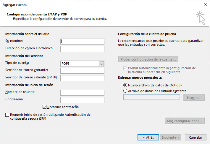 Ahora nos aparece la siguiente ventana en donde llenaremos todos los datos para comenzar a usar nuestro correo, los cuales te explicaremos facilmente.