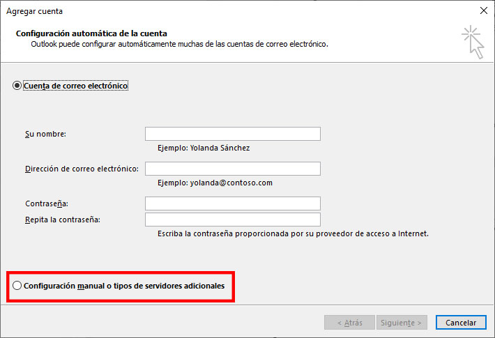 Dirección de correo electronico: el correo a configurar en outlook